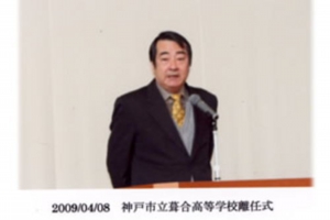 定年退職直前に起こった阪神淡路大震災では、3人の女生徒が亡くなるなど悲劇に見舞われた。校長室の床で寝ながら多数の避難住民への対応に追われたが、二宮教頭をはじめ、 教職員の皆さんが献身的に活動してくれたことは忘れられないエピローグである。