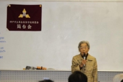 志水会長の挨拶、田坂校長から「修学旅行から帰ったところのエピソード」と
