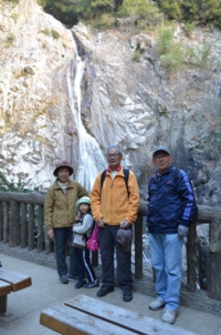 6名の参加者で賑わしく、いざ出発です。布引の滝は水しぶきを浴びるほど