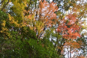 温暖な今秋は色付いたモミジはちらほら。見事な紅葉には少し早かったです
