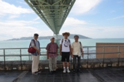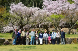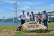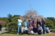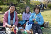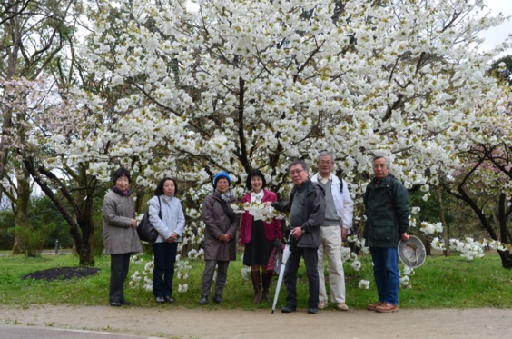 写真は出発前です、皆にこにこ明石公園の桜は雨にぬれて、これまた風情が有りました。