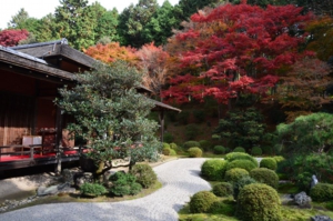 茶室が7つもある庭園にもその美しさが随所に見られ 紅葉の素晴らしさに幾度となく 足が止まった。