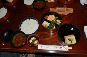 昼食は 衣笠 わら神社のそば「湯豆腐わら」で暖かい