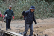 晴天の山道を歩くとぽかぽか春のよう、止まるとやはり厳寒です。