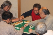昼食を出石そばでとり、3時半に宿に着くや否や雀卓囲んで一勝負。