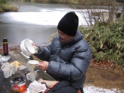 布引からツエンティークロス、徳川道を経て氷結の穂高湖、ここで熱いコーヒー