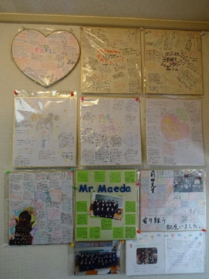 また個人や小グループでは、20年ぶりに会って以来ことある毎に手紙やメールをくれる旧姓Oさんと、同級生で写真と寄せ書きを送ってくれた東京在住の英語科4回生(油谷学年)の皆さん、私の離任の日の朝花束を持って来てくれたフリーライターN君とその後お家に招待してくれた(結婚式にも招待してくれた)H君夫妻と筒台会役員T君など友達5名の英系2回生(高橋学年)、建て替えが終わった学校に挨拶に来てくれた英語科1回生(高橋学年)、国際科10回生(定時学年)の皆さん、お子さん達を連れて学校に来てくれた坂東学年の英系女子5人、子供を連れてよく会いに来てくれる旧姓SさんやMさんYさんなど国際科1回生(山下学年)、東京に行った時夕食に付き合ってくれた国際科4回生(佐々木学年)3名、など。長年葺合に勤めて本当に良かったと思う嬉しい出来事でした。