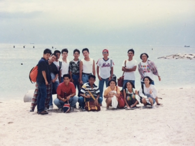 最初の行事は西宮にある甲山での一年生の歓迎遠足でした。音楽の梶原先生のアコーデオンでの歌唱指導やフォークダンスを鮮明に憶えています。現在は総合運動公園で実施されていますが、応援団の服装や内容は昔と変わらず受け継がれていると思います。夏休みにはクラス会をやりました(私のクラスは以前から、夏は淡路島で海水浴、春は姫路城でお花見と決めていたので)。それが当日は台風がやってきて大あらしで明石から淡路島への高速艇が欠航となり、明石に集合したものの中止・解散しようと思いましたが、みんなにせがまれ山陽電車に乗って林崎海岸に行くことになりました。強風と砂嵐の中でのビーチバレーと海水浴は、今では本当に懐かしい思い出です。