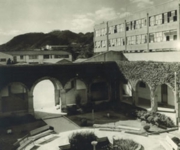 国立神戸高商のあとに葺高が建ったことは、ご存じでしょう。その高商の建築物は現在は南門だけになっている。私が来たころは、兼松記念館と称するアーチ型の枠のある廊下に囲まれた中庭と言った生徒たちの憩いの場を持つ管理棟があった。中庭では昼食時いつも生徒たちの歌声が響いた。 (筒台会情報のページに掲載中)