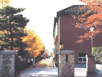 昭和50年頃その建物が危険だと取り壊しがきまった。高商時代の研究棟であったので、当時、高商の卒業生をお招きしてお別れ会を開いた。おいでくださった、明治生まれのかたがたのお話の中に、玄関の屋根の上の壺を (写真1) “智慧”の壺というとのお話がでた。でもそのいわく因縁はご存じなかった。そのご、竹内先生も随分お調べいただいたがわからず、そのままになっている。わからないのが幸いと私は学んで蓄えるための壺と解釈して、葺高のシンボルとして新体育館の壁 (写真2) にとどめていただいた。そして、兼松記念館に使われていた御影石をそのまま廊下に使っていただき、学問の府のアーチ型の面影を体育館の廊下に残していただいたのである。