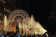 当日は阪神・淡路大震災の犠牲者を追悼し、復興を願う光の祭典「神戸ルミナリエ」が開催され、(市役所の24F(展望)からの広場写真がガラス越しの為うまく写っていませんが)田坂校長から、「来春から、遂に仮校舎の建設が始まり、3年後の全面立て替え完成」のお話、志水会長から、「建て替えに伴う筒台会部室」の話、来年のホームカミングデー(葺高祭)・筒台会総会・体育大会、けがで松葉杖での出席者も含め12名の話が盛り上がりました。