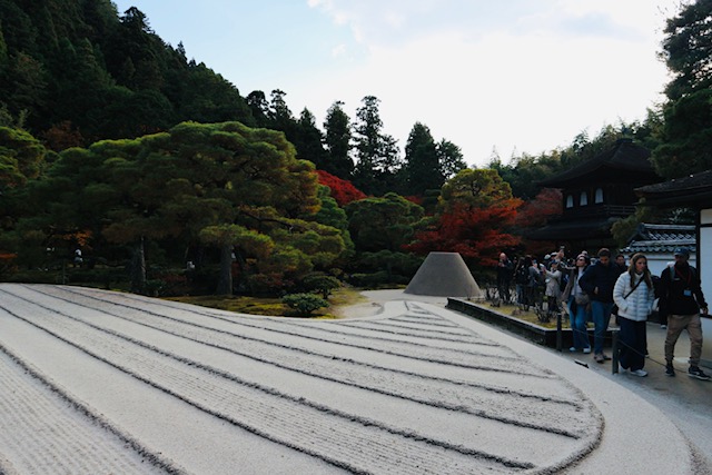 平成6年に世界文化遺産になった銀閣 慈照寺へ 庭園には錦鏡池 白砂の向月台と銀沙灘が独特だ。