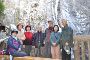 6名の参加者で賑わしく、いざ出発です。布引の滝は水しぶきを浴びるほど