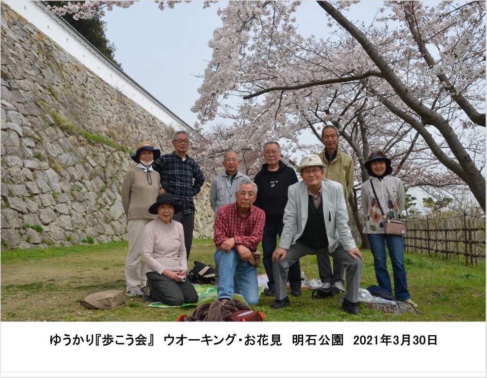 写真は出発前です、皆にこにこ明石公園の桜は雨にぬれて、これまた風情が有りました。